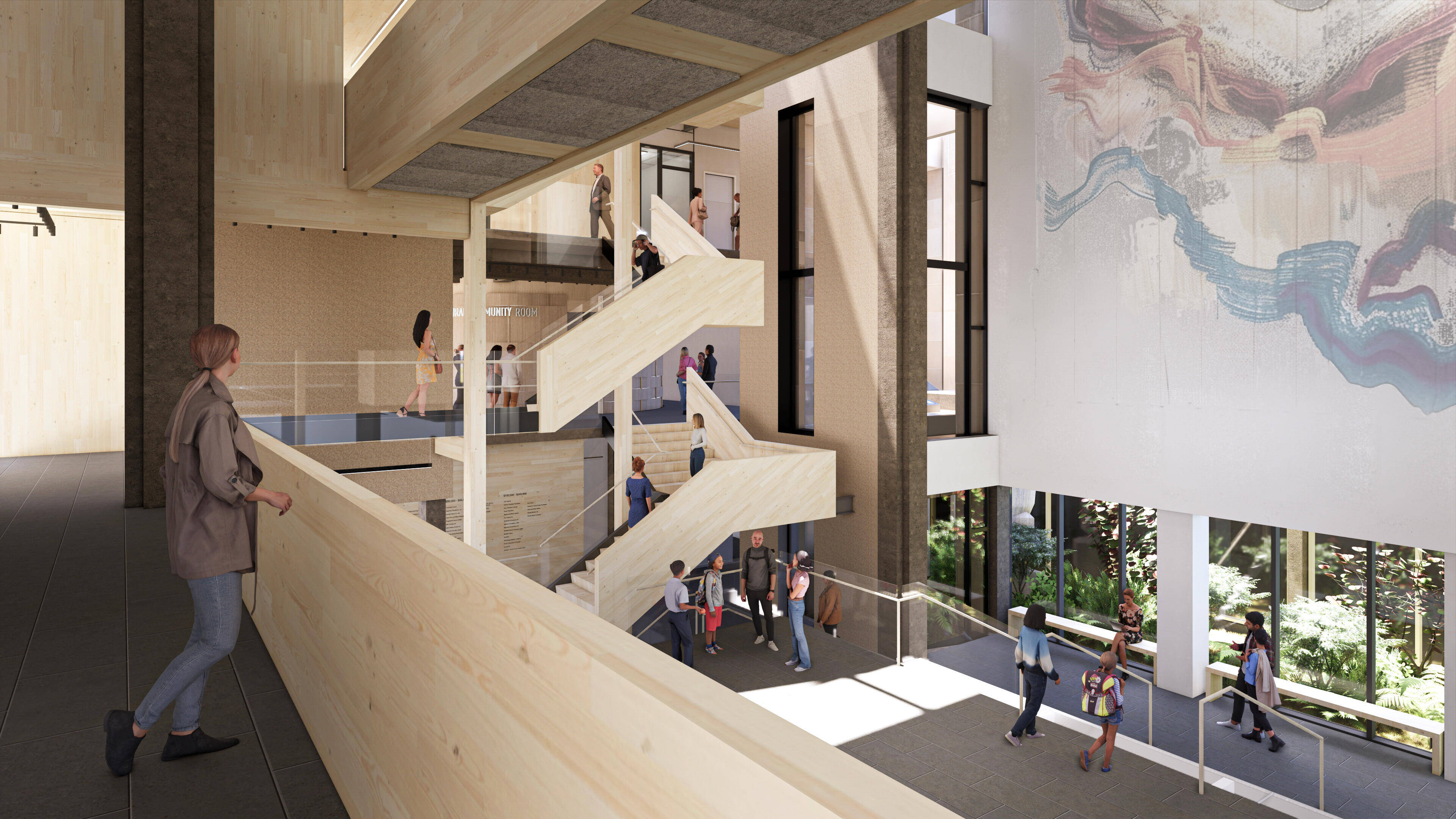 Reconnu comme lieu historique national du Canada, le Centre des arts de la Confédération fait l’objet d’un rafraîchissement qui prévoit l’ajout de nouvelles caractéristiques, sans porter atteinte au style brutaliste d’origine de l’édifice, vieux de plus de 60 ans. Imaginée par Abbott Brown Architects, la rénovation de 67 millions de dollars du Centre comprendra une bibliothèque entièrement transformée, un système photovoltaïque en toiture ainsi qu’un nouvel espace de répétition théâtrale intégrant des composants en bois massif. Selon l’architecte Alec Brown, il était essentiel de conserver la « composition d’ensemble » du Centre dans le concept architectural. Il précise que de « nouvelles zones interstitielles en bois massif et en verre » seront aménagées entre les panneaux de grès d’origine. La nouvelle salle de répétition, aménagée sur l’une des terrasses actuelles, comportera des planchers et des panneaux de toiture en bois lamellé-croisé (CLT) légers, soutenus par des colonnes en bois lamellé-collé. Les représentations théâtrales se poursuivront et la galerie d’art demeurera ouverte pendant toute la durée des travaux. L’achèvement est prévu pour 2026.