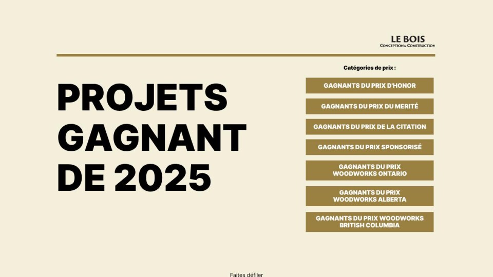 Les gagnants suivants du concours WoodWorks Ontario sont également lauréats dans d'autres catégories :