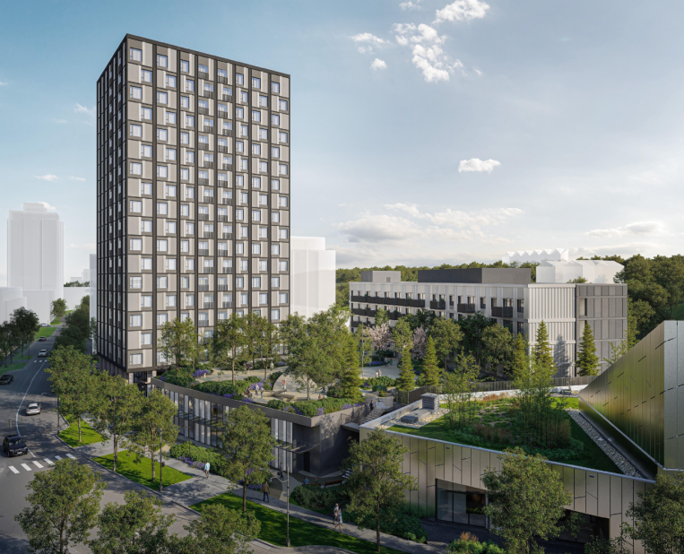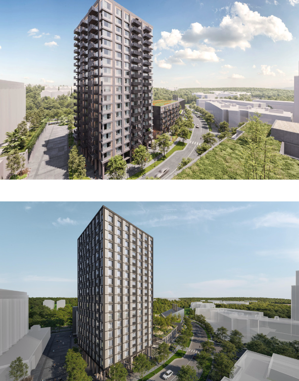 Parcel 19.1, du promoteur Wesgroup Properties dans le River District de Vancouver, est une tour hybride en bois massif de 19 étages, dont 17 étages en bois massif sur un podium en béton de deux étages. Soutenu par un vaste plan d’ensemble, le projet comprend environ 240 logements locatifs et unités en copropriété, ainsi qu’une clinique de soins d’urgence au rez-de-chaussée.