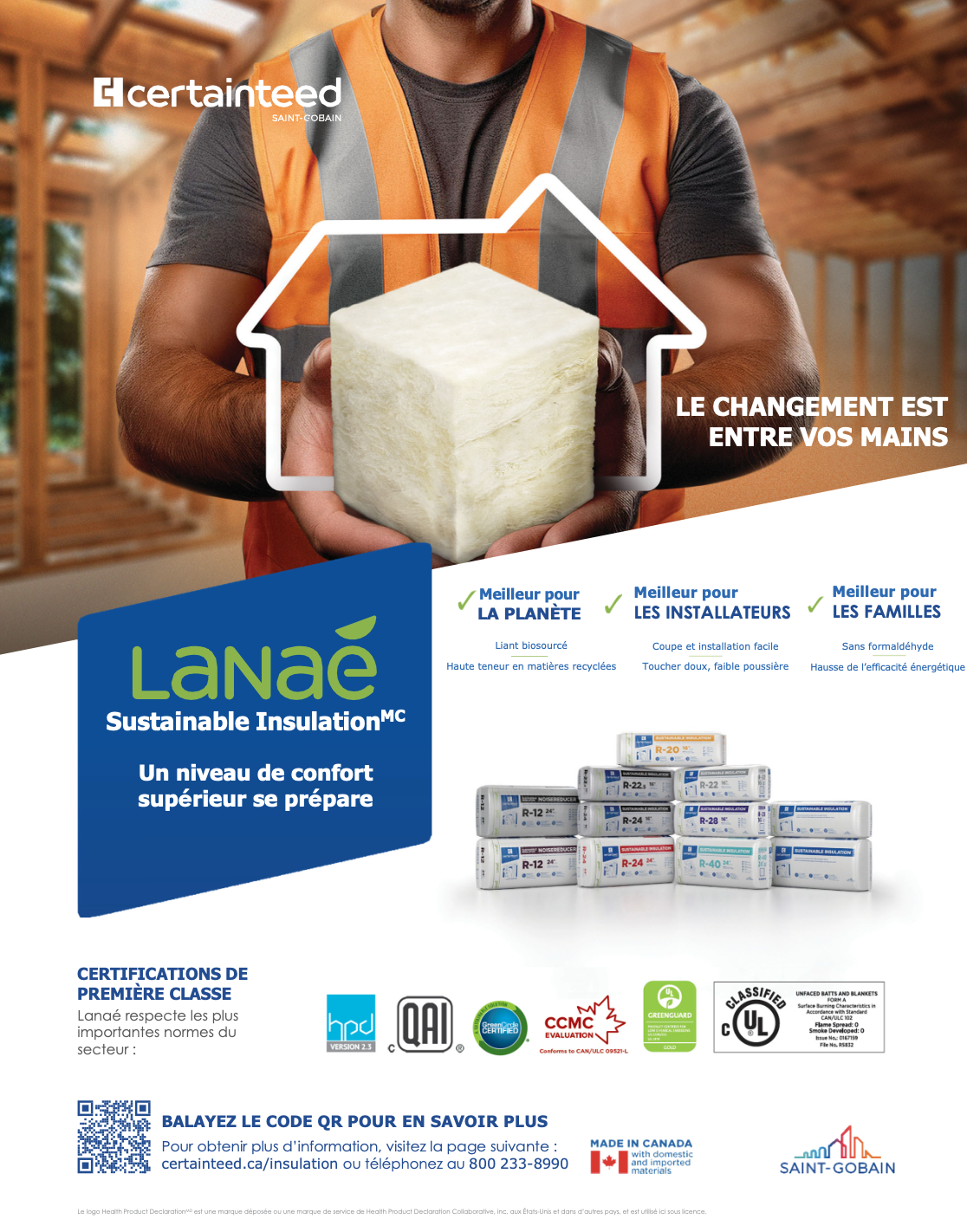 Les attentes en matière d’écoresponsabilité, de performance et de bien-être des occupants sont de plus en plus grandes, et le contrôle intelligent de la vapeur devient fondamental pour les constructions en bois de haute performance. Associés à une isolation en fibre de verre, les pare-vapeur intelligents aident à gérer les performances thermiques et l’humidité dans l’assemblage. MemBrain assure des assemblages étanches à l’air, résilients et résistants à l’humidité, comme l’exigent les codes énergétiques canadiens lorsque la membrane est installée comme pare-air et pare-vapeur conformément aux instructions du fabricant et aux exigences du code national du bâtiment.