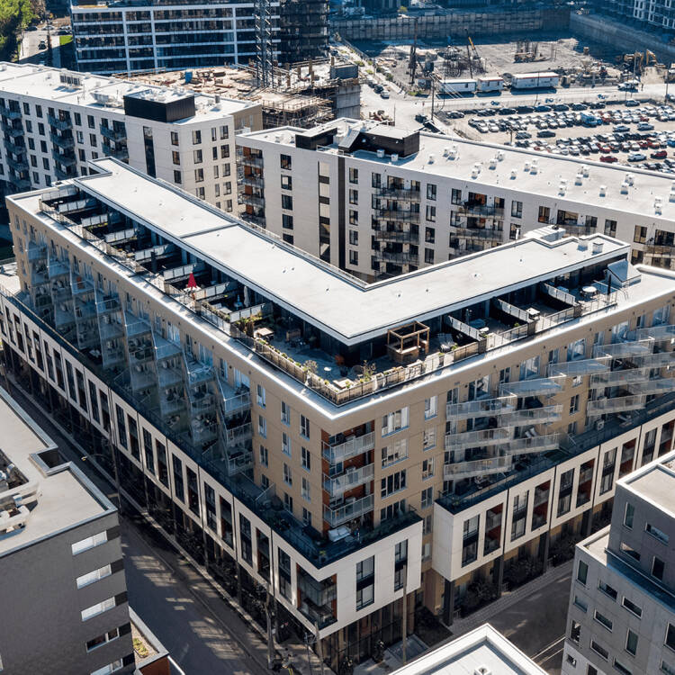 2016, Arbora, Montréal, QC — Premier immeuble résidentiel en bois massif de plus de six étages en Amérique du Nord — Au moment de sa construction, il s’agissait du projet en bois massif de la plus grande envergure au monde