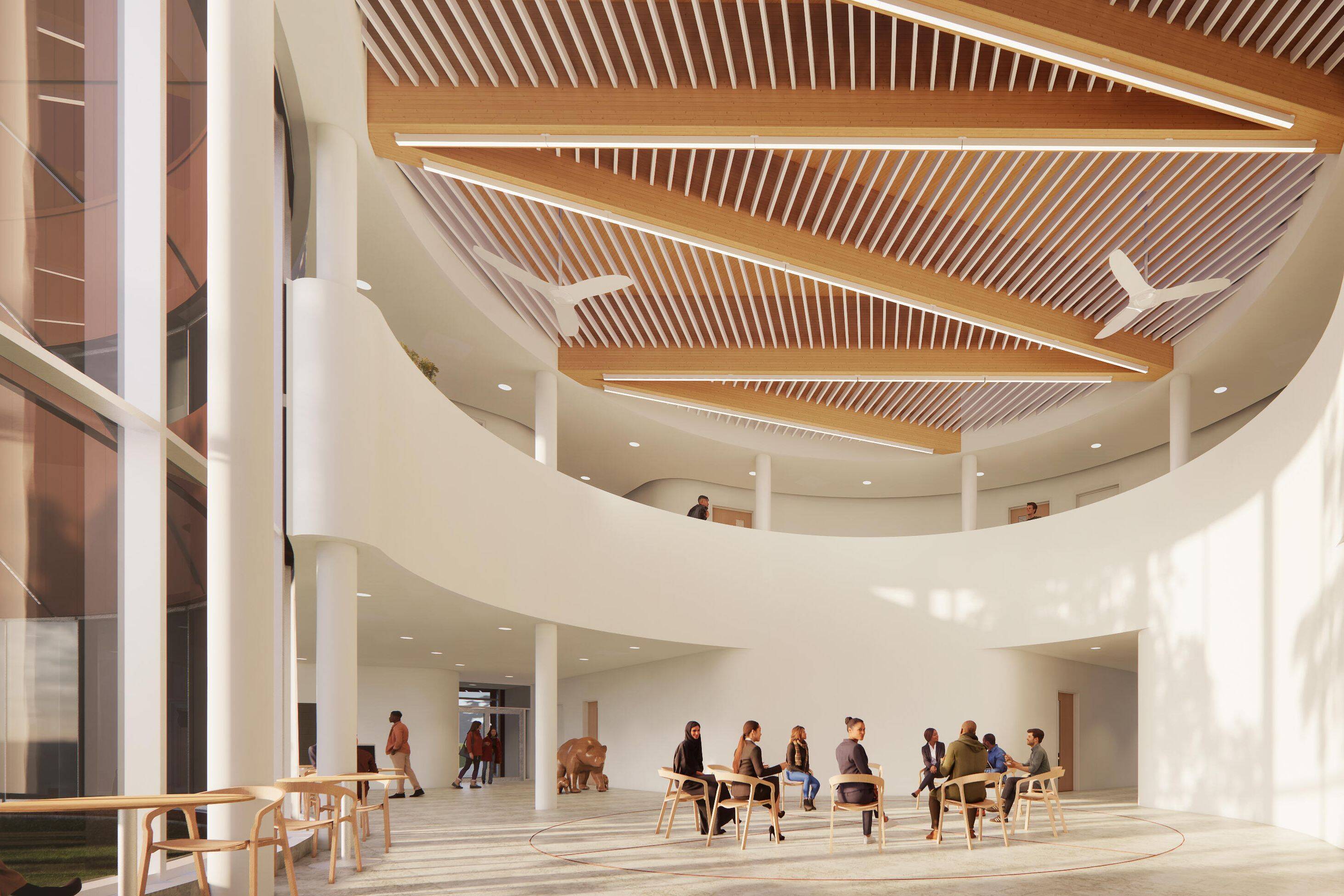 Le centre médical Maskwa vise à offrir un meilleur accès à des soins de santé rapides et coordonnés dans la région en regroupant, au même endroit, des médecins généralistes, des spécialistes, des professionnels de la santé mentale et divers services de santé connexes. L’établissement de trois étages, d’une superficie de 100 000 pi², comprendra des colonnes et des poutres en bois lamellé-collé ainsi que des planchers en panneaux GLT, permettant de grandes portées et des aménagements ouverts adaptés à des espaces cliniques modulables. Une clinique d’enseignement administrée par l’Université de l’Alberta et Northwestern Polytechnic occupera le rez-de-chaussée et pourra former jusqu’à 20 résidents en médecine chaque année. La construction a commencé en mai 2025 et l’ouverture du centre est prévue au début de 2027.