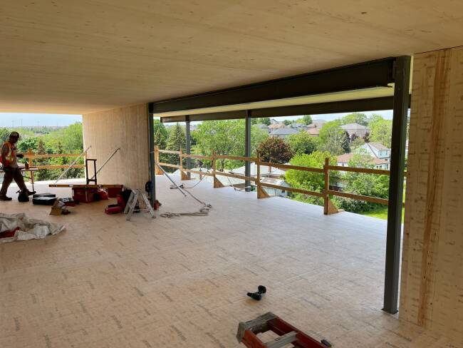 Sustainable Local Procurement: The CLT panels were fabricated at Element5’s FSC-certified facility in St. Thomas using wood sourced from sustainably managed Ontario forests, ensuring responsible practices from harvest to production.
