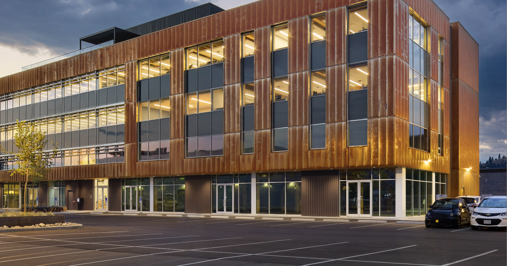 From a development perspective, mass timber was selected to elevate marketability, meet municipal sustainability goals, and offer comparable insurance rates to a light-wood-frame alternative. Exposed timber was viewed as a strategic investment in tenant appeal, which proved true when the project achieved a 6–22 percent lease premium over comparable office space in Kelowna. This decision also aligned strongly with community expectations for low-carbon development.